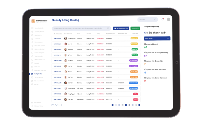 Tổ chức hồ sơ nhân viên, theo dõi lịch trình và quản lý tiền lương một cách liền mạch. Công cụ tích hợp của Mầm Chồi Lá giúp bạn duy trì một đội ngũ nhân viên hiệu quả, tập trung vào sự xuất sắc giáo dục.